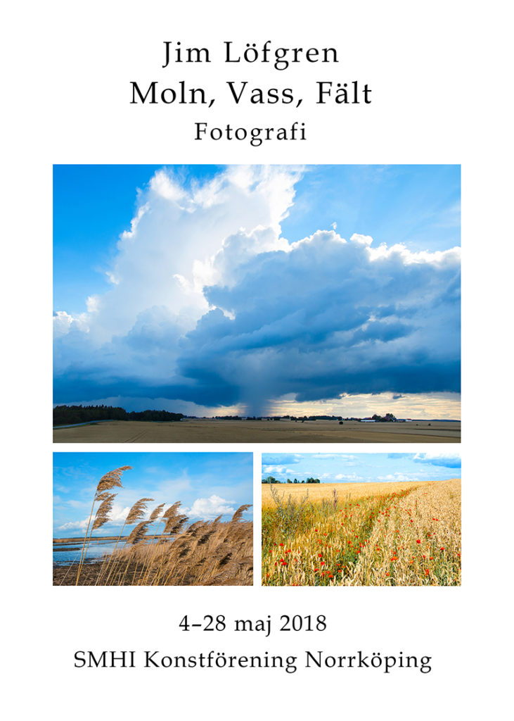 Vernissage för min bildutställning ”Moln, Vass, Fält” på SMHI Konstförening i Norrköping den 4 maj. För var kunde det passa bättre att hänga Moln? Moln från de höga himlarna över Vadstena-Vättern trakten. Men lika gärna: Moln utan hemvist — föränderliga och eviga. Jag visar även från serierna Vass och Fält. Allt utfört på pigment/fine art-utskrifter. Utställningen kan främst ses av de anställda vid SMHI. Men Moln-temat kommer att vara med på Vadstena konstrunda i september.